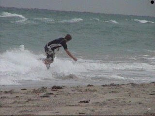 (Right) A ride off a wave breaking horizontal to the beach. ( mostly whitwash on this one )
